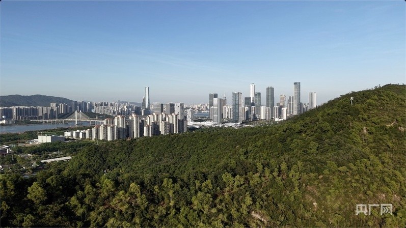 从小横琴山俯瞰横琴岛及对岸的澳门(央广网记者 罗世伟 摄)